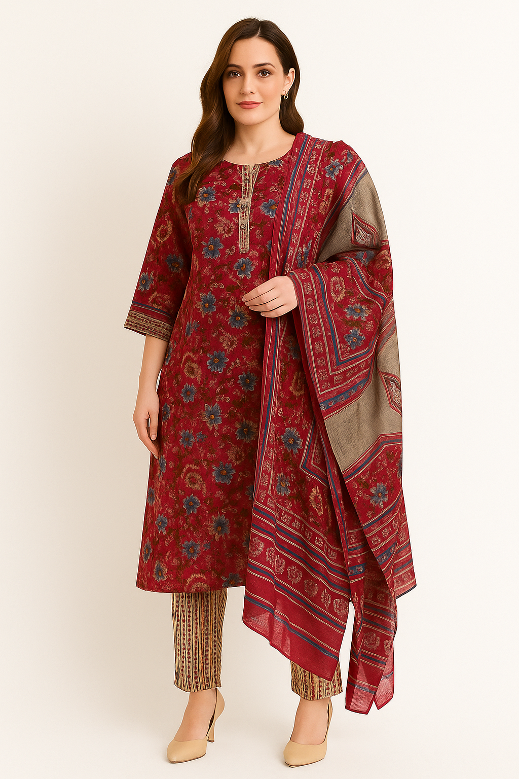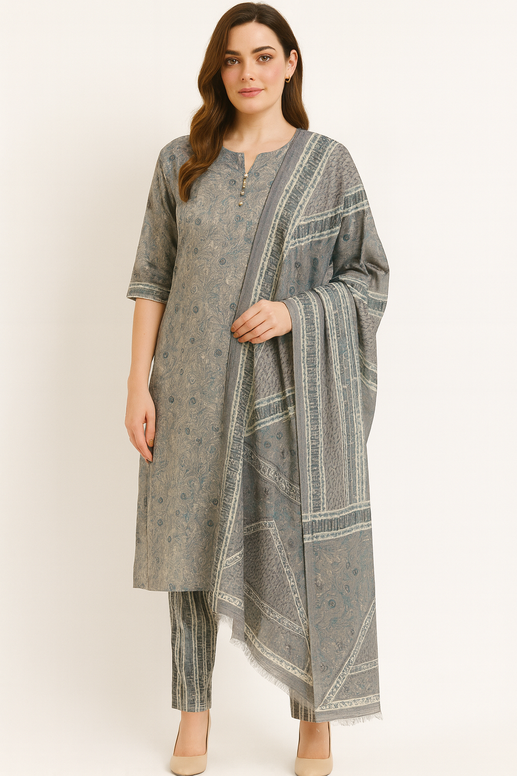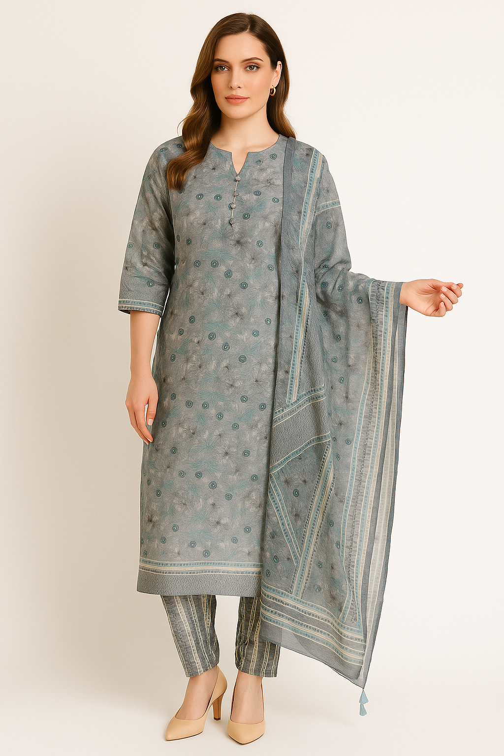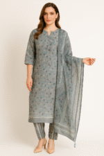 Churidar set grey and light red color